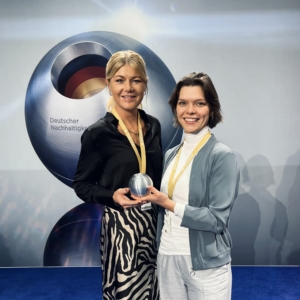 Wir konnten die Jury des Deutschen Nachhaltigkeitspreises durch unser vorbildliches Zusammenspiel aus artenvielfaltsfördernder Bio-Landwirtschaft, hohen Tierwohlstandards und konsequenter Transparenz für Konsument:innen überzeugen. Mit unserer Initiative „Die Weide lebt!“, einem wissenschaftlich fundierten Maßnahmenkatalog für Biodiversität, setzen wir seit 2022 neue Maßstäbe: Gemeinsam mit unseren Bio-Landwirt:innen setzen wir gezielte Maßnahmen für mehr Artenvielfalt auf den Höfen um. Wir honorieren außerdem die Landwirt:innen seit kurzem für ihre Naturschutzleistung. Auf ihren Höfen leben seltene Arten wie das Braunkehlchen, die Großtrappe und wilde Orchideen. Dank der Teilnahme der Höfe an unserer Initiative und ihrem Einsatz, können wir diese Tiere und Pflanzen nun noch besser schützen. Die Auszeichnung mit dem Deutschen Nachhaltigkeitspreis dient uns als Motivation für unsere Initiative.